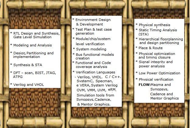 Our Engineers understand different CADs, Circuit Emulations and Modelling, and Verification tools.